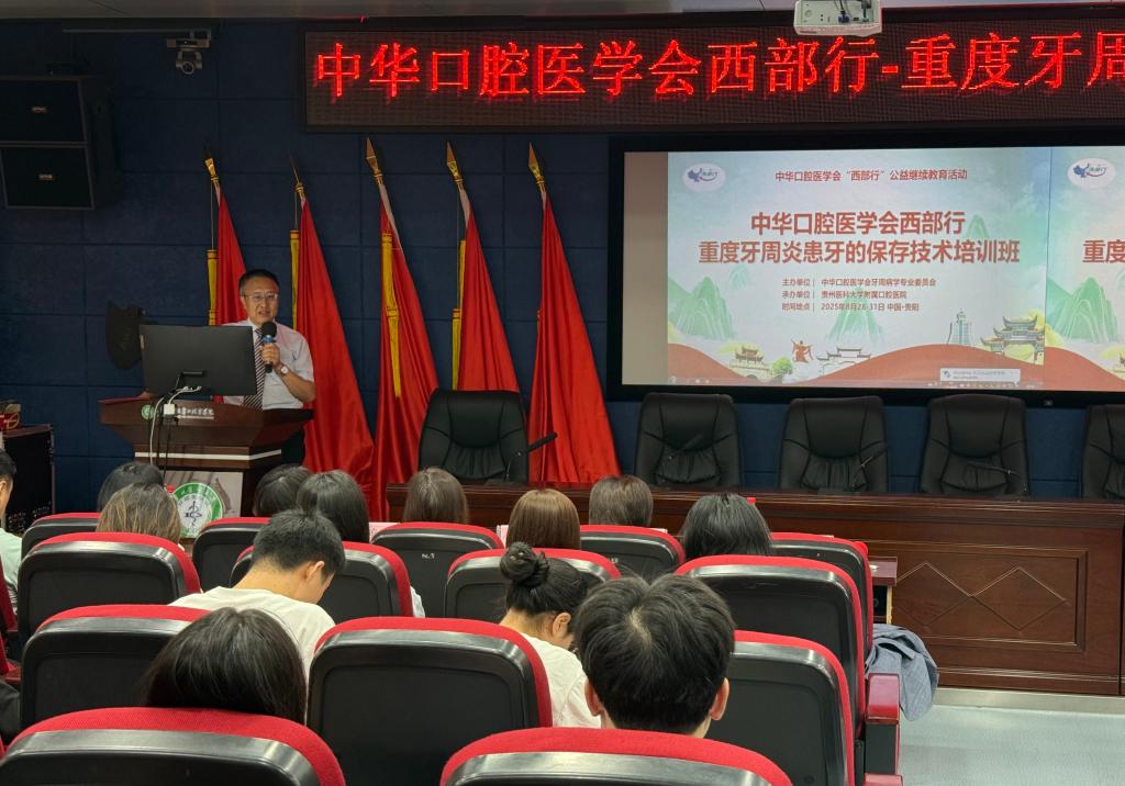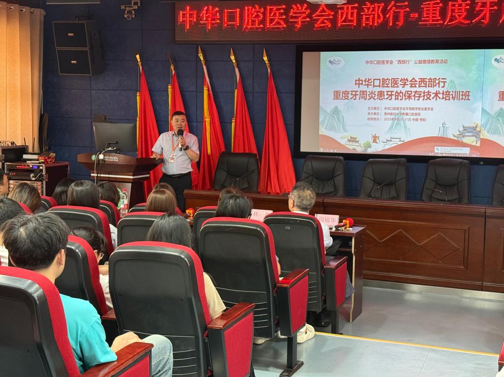 承办的“西部行——重度牙周炎患牙的保存技术培训班”在贵阳市成功举行。本次培训聚焦重度牙周炎患牙保存技术,旨在提升参训人员的规范化操作能力与综合诊疗水平,促进学科交流与区域均衡发展。来自全国各地的100余名学员齐聚贵阳,共同探讨牙周疾病防治新理念、新技术和新实践。