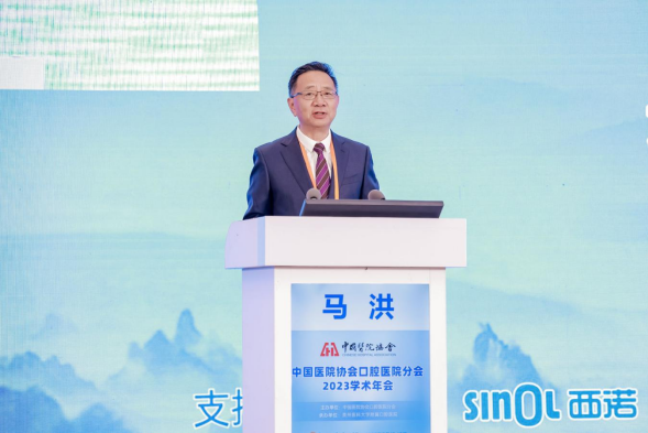 对能够承办此次大会倍感荣幸,对中国医院协会口腔医院分会的信任和各位口腔同道的支持鼓励致以诚挚谢意,并代表医院向与会领导及嘉宾表示热烈欢迎。马洪在讲话中简要介绍了医院的发展情况,指出医院多年来按照“夯基础、强内涵、拓格局、上层次”工作思路,坚持“科教兴院”办院方针,致力于打造多层次口腔医疗服务体系,在十年建设运营期间取得了一定成绩。马洪指出,此次会议聚焦口腔医院绩效考核、医疗质量、研究型医院、智慧医院等内容展开,希望大家在研讨中交流口腔医学领域的新理念、新进展和新信息,同心凝聚行业力量,为推动口腔医院发展聚集全国智慧。