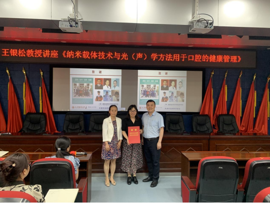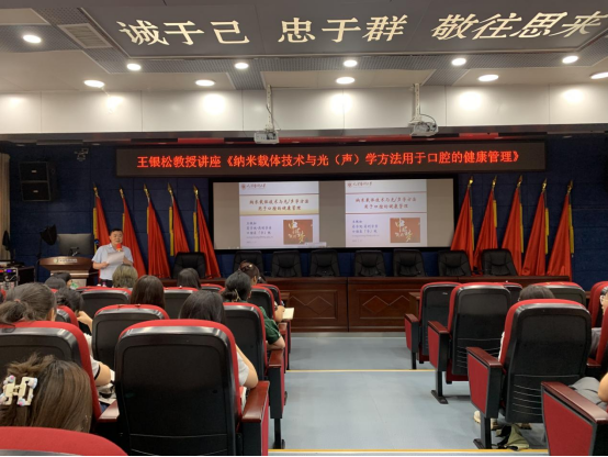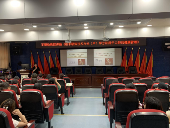 作专题学术讲座,讲座主题为“纳米载体技术与光(声)学方法用于口腔的健康管理”,由研究生科研管理科科长廖健主持,教职医护、研究生、规培生共百余人参会学习。
