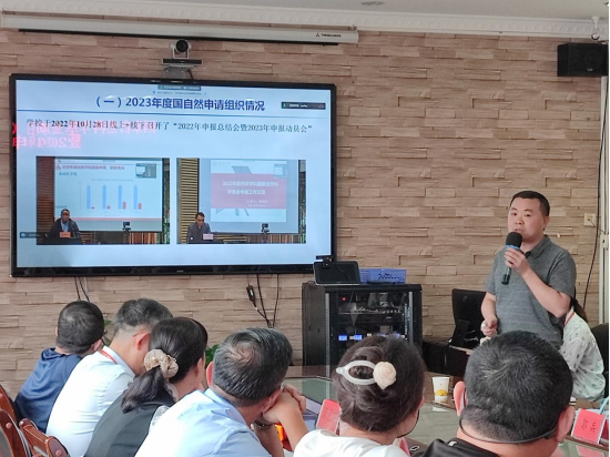 李一欣强调申报国基项目的重要性,介绍了学校2023年国基项目申报及获得资助的整体情况,总结了口院教师参与国基项目申报各项工作情况,表示学校今年将继续通过专家面对面指导、专家撰写培训等方式推动和帮助教师提升国基项目申请书撰写质量,希望口院教师高度重视,积极参与,按照学校安排的时间节点做好国基申报的各项工作。