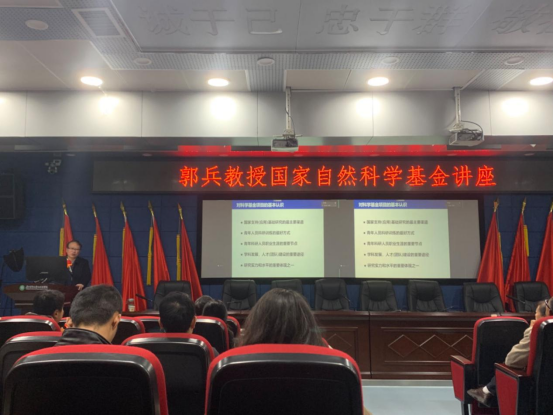 讲座中,郭兵指出,国家自然科学基金项目是学术界含金量最高、评估体系最为科学、评审结果相对公正、最能体现申报者学术水平的科研项目,获得国家自然科学基金项目资助,无论是对个人发展、还是对单位的学科建设都很重要。随后介绍了国家自然科学基金项目的基本要素、申请及评审程序,并以自己今年成功获得的资助面上项目为案例,详细解析了国家自然科学基金申报书的撰写要点,包括项目名称、基本信息填写、科学问题属性、摘要、经费预算以及报告正文等九方面。郭兵强调了填写过程中容易出现的错误及常见问题,并从评审专家的角度提出忠告和建议。他强调,项目申报时要认真回答“要做什么?为什么做?怎么样做?由谁来做?”要保证申请内容具有可比性、符合要求、有实际经验支撑,遵循明确的规律。此外,郭兵还提醒申报者要有效利用本单位科研管理部门提供的支持和帮助,做好计划,合理安排好申报时间,做好材料的收集与整理。他特别提到,形式审查环节同样不容忽视。