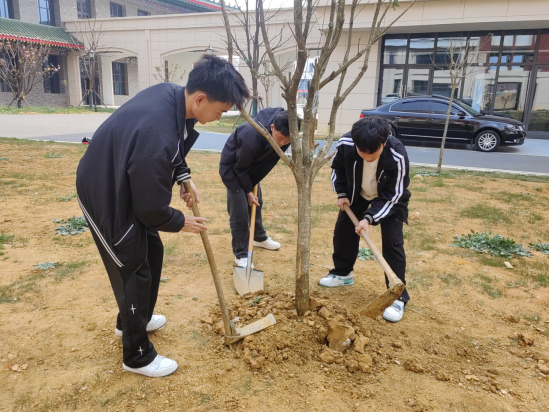 新栽培的小树迎风而立、生机盎然,为美丽的云漫湖校区再添一处漫丽的景象。