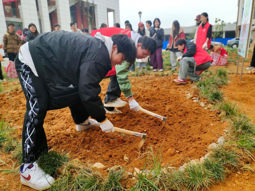 活动现场大家分工明确、配合默契,分组协作捡拾垃圾、清理碎石、挥锹铲土,有序播种施肥、移栽花苗,现场一派热火朝天的景象,在汗水和欢笑中见证了青春与活力。