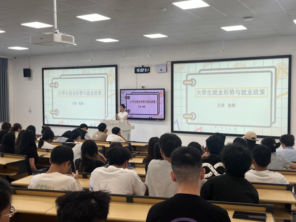 学生管理科科长张婷在云漫湖校区临床组团M103教室以“大学生就业形势与就业政策”为题进行授课,拉开了2024级学生职业规划教育的序幕。