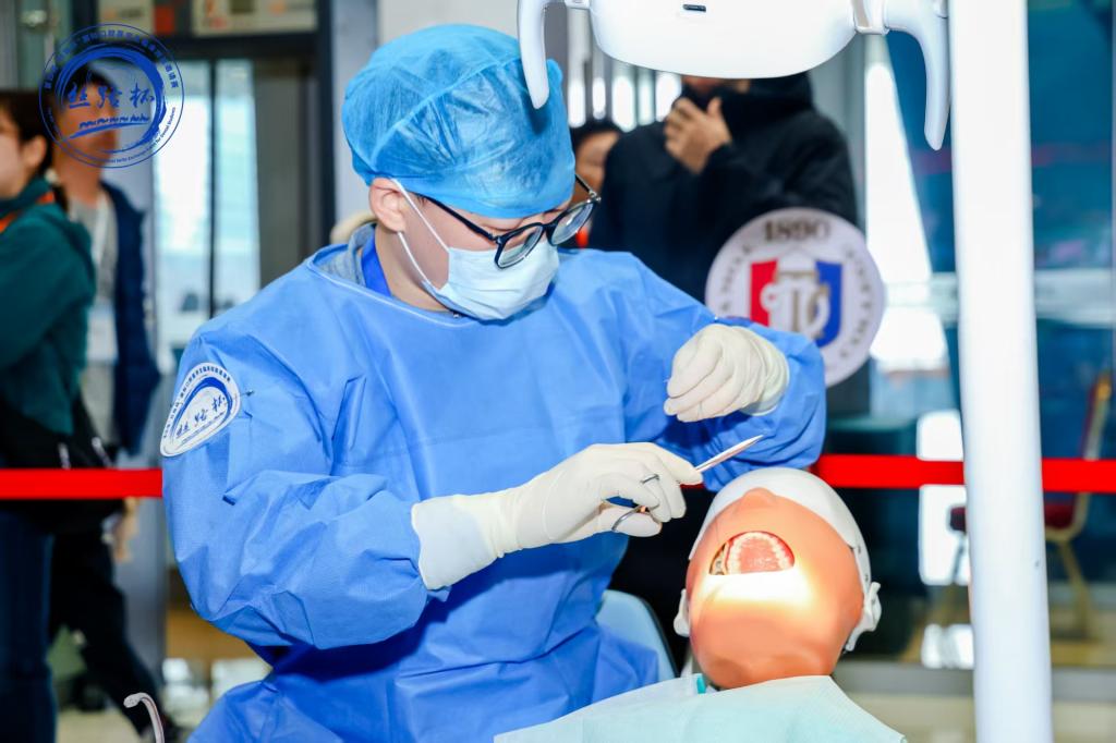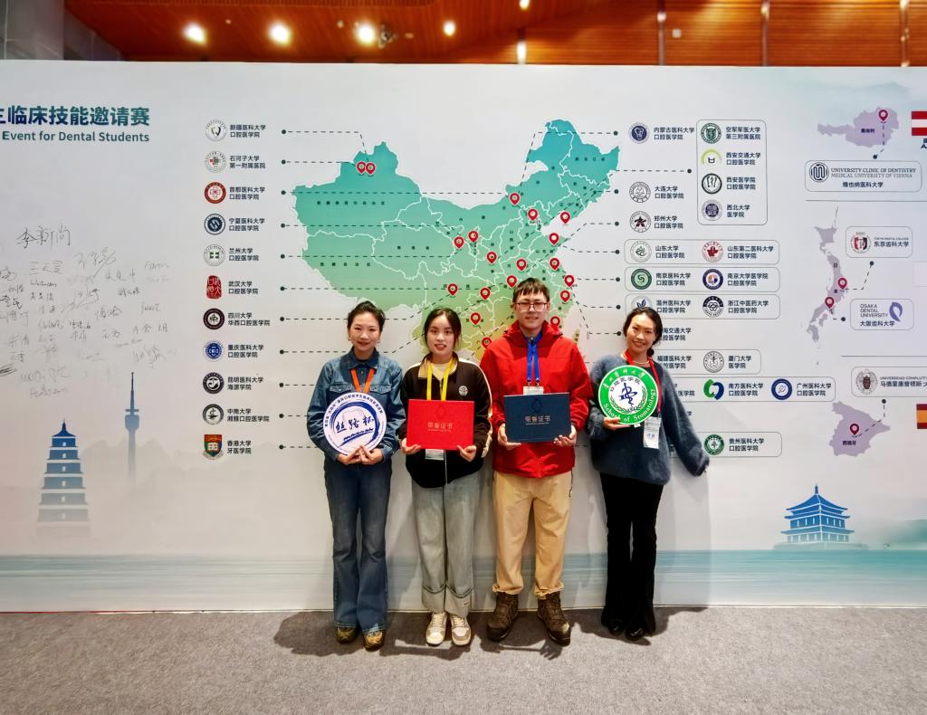 党委副书记何雨羲带领生产实习科科长胡睿、牙体牙髓科主任谭旭、研究生周小群和本科生张梦飞参加此次比赛。同时,谭旭受邀担任大赛评委。
