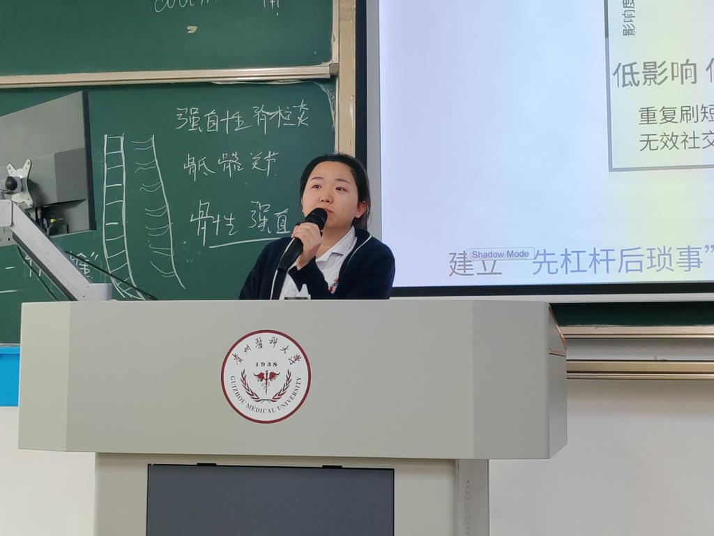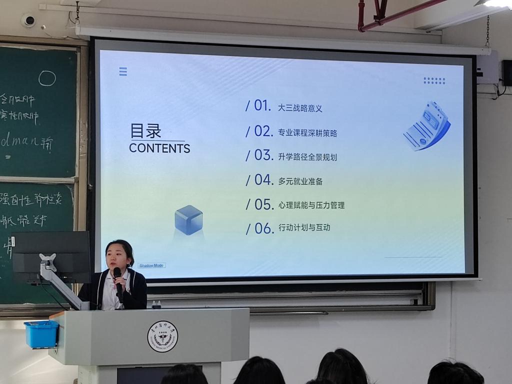 为帮助口腔医学专业2023级学生明确学业发展方向,提前做好升学与就业规划,12月11日,2023级口腔2班班主任王欢在药学楼4301教室开展以“承前启后,筑梦远航”为主题的学业规划讲座,为同学们梳理发展路径、解答成长困惑。