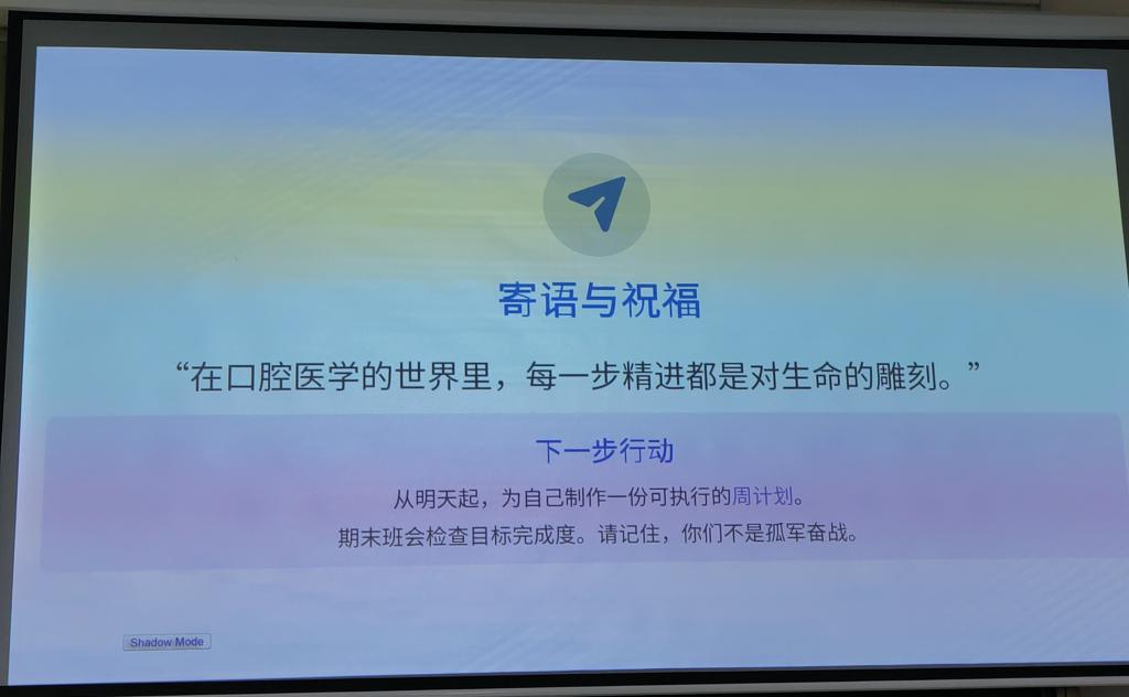 本次讲座围绕口腔医学专业大三阶段的发展需求,系统贯通了专业学习、升学准备与职业规划等重要环节,致力于为学生成长提供清晰指引,不仅有助于学生筑牢专业基础、树立长远发展观念,也为其未来在口腔医学领域深入发展与践行医者使命奠定了坚实的规划基础。