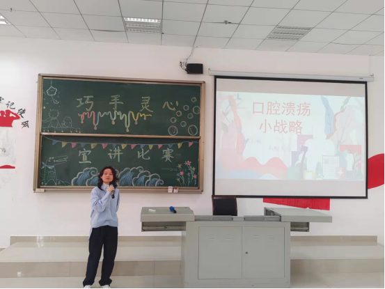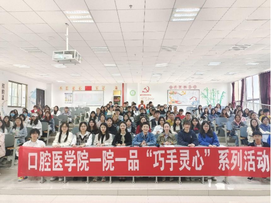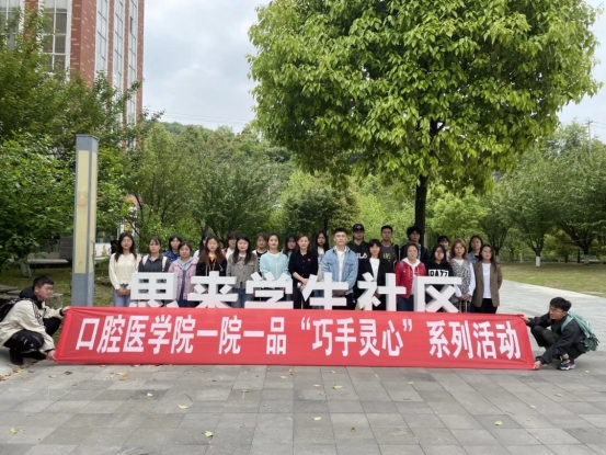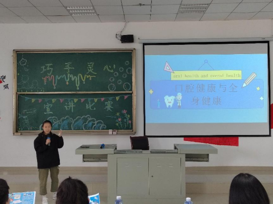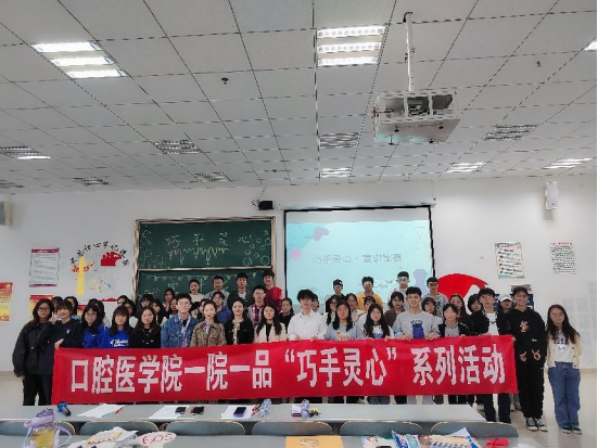 于5月18日在南校区思来社区与7506教室举行了“巧手灵心”系列活动。本次活动以“爱牙护齿,言传躬行”为主题,以科普宣讲为主要内容,学生管理科科长张婷、学院团委副书记刘逸洲、医院团委副书记蒋韵娴及口2020、2021级辅导员汪继蓉担任评委,2020级全体学生参加比赛。