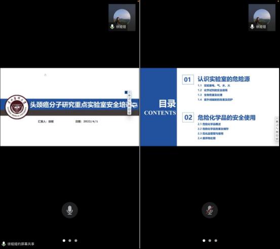 于4月采用线上培训的方式,组织开展了实验室安全教育培训。此次培训由实验室负责人毛岭主持,实验室技术指导徐娅主讲。实验室管理人员和在读研究生参会学习。