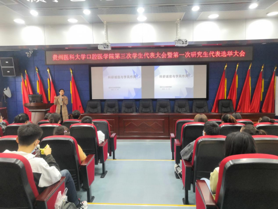 在行政楼五楼学术报告厅组织召开第三次学生代表大会暨第一次研究生会代表选举大会。研究生科研管理科科长廖健、副科长谭旭,院团委副书记蒋韵娴,研究生科研管理科周容,毕业后医学教育管理科吴秋蓉及80名在校研究生参加会议。院组织员陈培各主持会议。