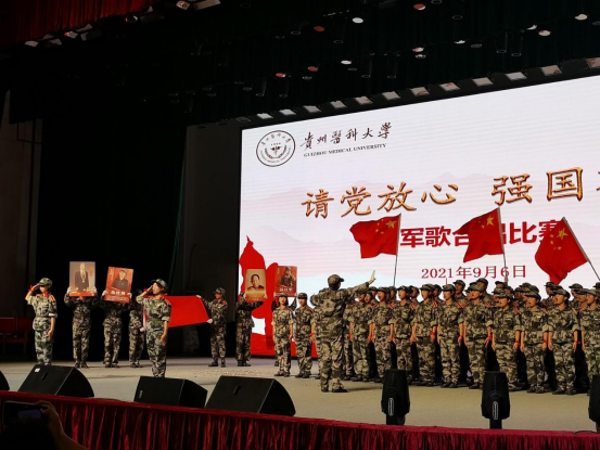 2021级新生参加了贵州医科大学“请党放心 强国有我”军歌合唱比赛。比赛在南校区举行,来自学校各二级学院的17支合唱队参加比赛,用歌声向党献礼!