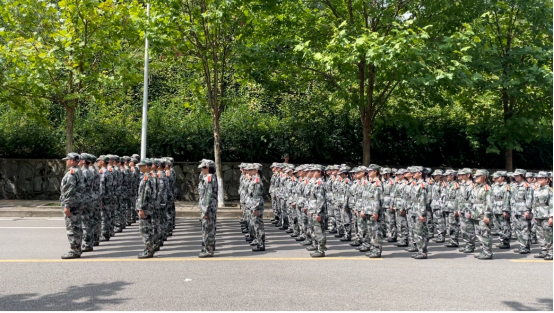 “三十二连的口院同学,文武双全,超越自我,勇往直前!”嘹亮的口号,整齐的步伐。同学们迈动双腿、挥舞双臂,在训练场上感受烈日的炙烤和钢铁般意志力的考验。他们共同感受着初次转体的迟钝,坚持着踢正步时用力下砸的疼痛,体悟着齐步与正步摆臂的异与同,也一起经历着教官的肯定与批评,享受着加分的喜悦和其他连队的赞许……