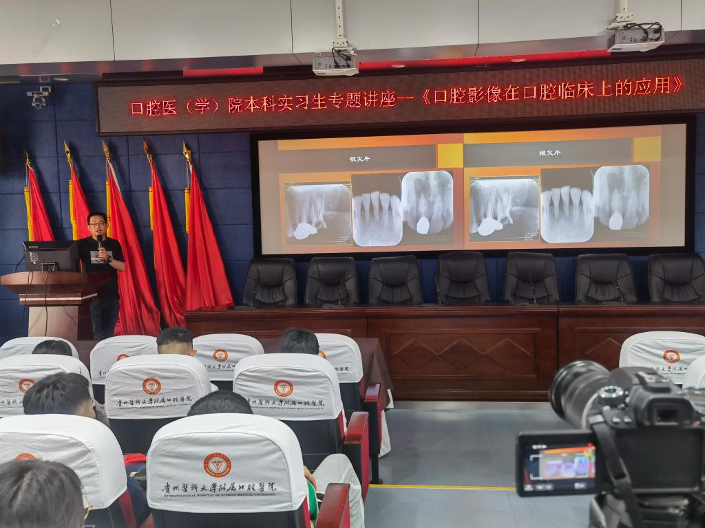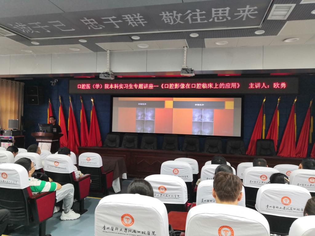 对2017级口腔专业、2018级公共事业管理专业、2019级护理专业实习生开展专题讲座——“口腔影像在口腔临床上的应用”。讲座由口腔影像科欧勇老师主讲,生产实习科科长胡睿老师主持。