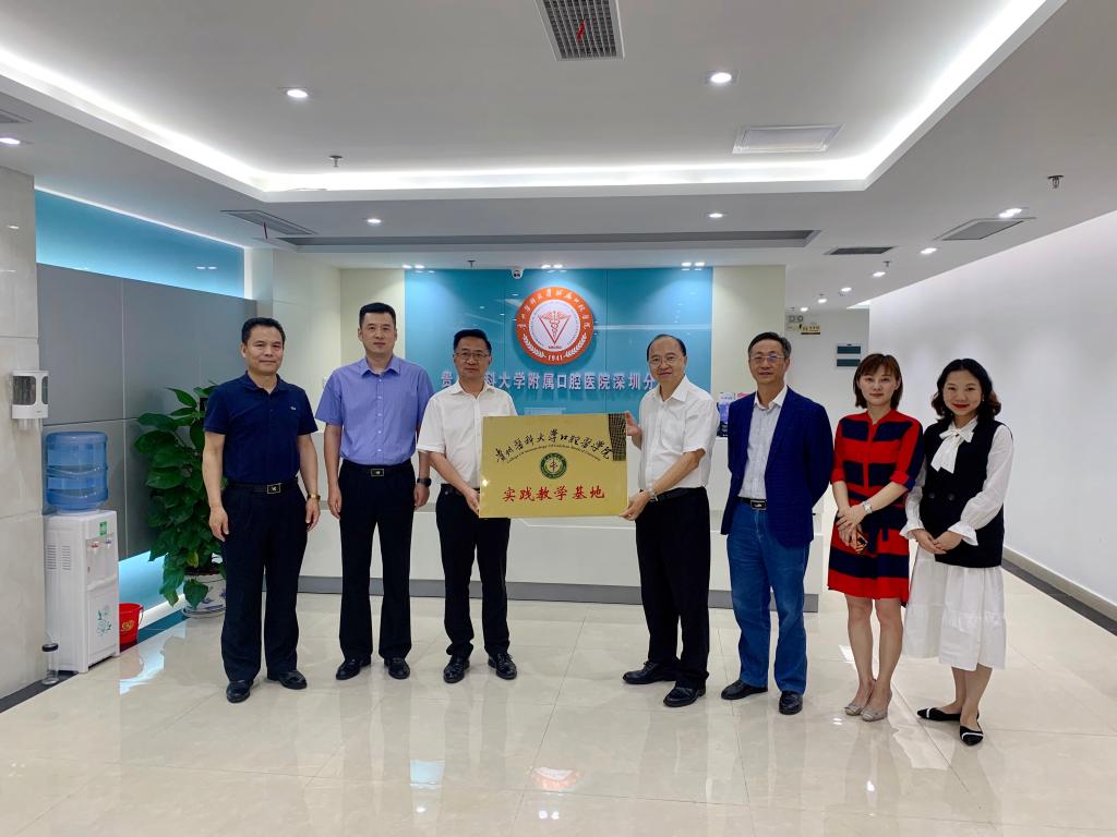 党委副书记、院长马洪,副院长王永,党委副书记何雨羲,生产实习科科长胡睿一行前往深圳,与深圳市口腔医院、深圳国际旅行卫生保健中心(深圳海关口岸门诊部)、北京中医药大学深圳医院(龙岗)共同签署口腔医学院“合作共建实习基地协议”并进行“实践教学基地”授牌仪式。