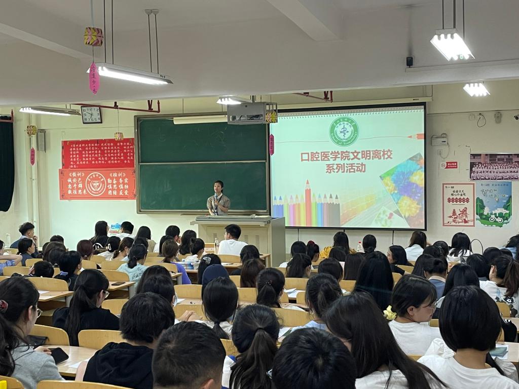 在北校区4401教室举办了文明离校活动。此次活动由口腔学院学生管理科负责人、2021届辅导员张婷主持,全体2021届毕业生参加本次活动。