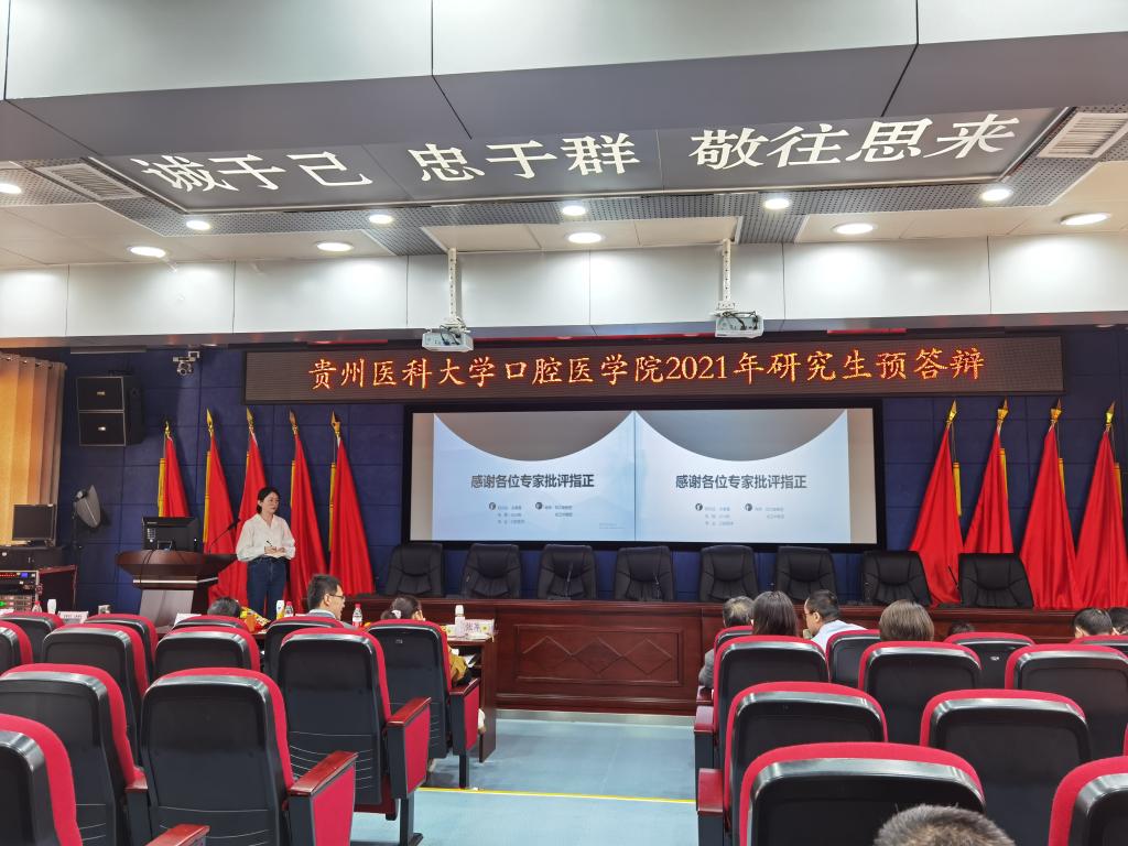 硕士研究生学位论文质量,强化研究生科研能力培养过程管理,提高研究生答辩的规范性,帮助研究生顺利通过学位论文答辩,按照贵州医科大学硕士研究生学位申请要求,4月29日,口腔医学院举行了2021届研究生预答辩。本次预答辩特邀贵州医科大学基础医学院博士研究生导师左丽和崔古贞担任预答辩专家。