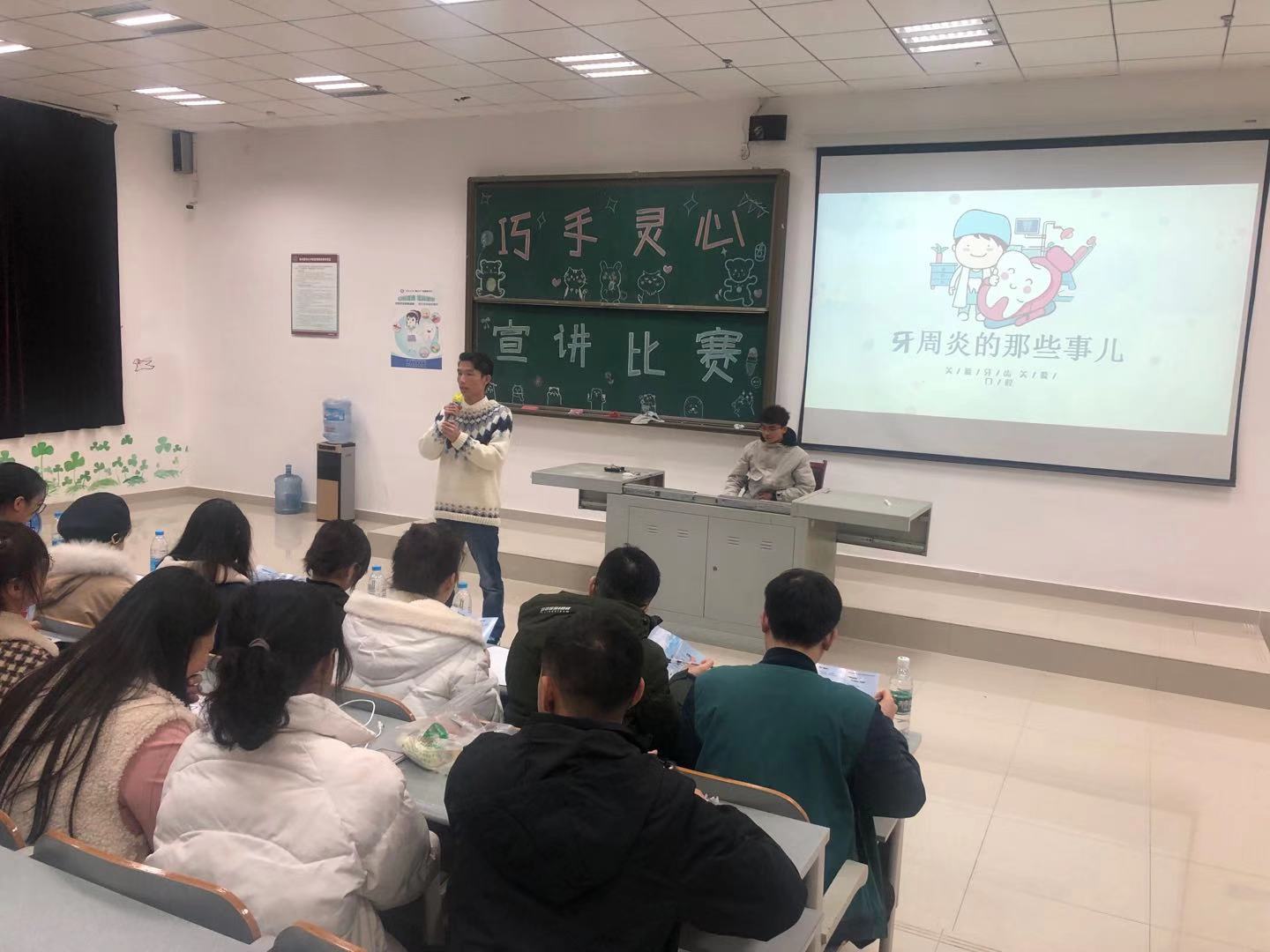 于11月25日在4406教室举办巧手灵心之小白牙口腔宣讲比赛。出席本次比赛的评委有口腔学院团委副书记刘逸洲,口腔医院团委副书记蒋韵娴,医院团委段珊珊,口腔修复种植科田艾、文超举、陈河林,牙周黏膜科靳大力,以及2018级辅导员赵会、2020级辅导员汪继蓉。