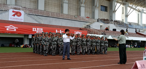 党委副书记钱禾、学生管理科负责人张婷以及学院团委、2019级辅导员刘逸洲到场为新生鼓励加油。此次军歌合唱比赛以“中华人民共和国成立70周年”为主题,表达了对建国70周年的深切祝福。