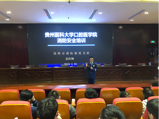 于4月16日下午和4月18日下午分别在南校区道德讲堂、北校区临床技能中心207室召开安全教育讲座,此次讲座由云岩区消防大队三级指挥长张桂钢主讲,口腔医学院学生管理科副科长张婷主持,口腔医学院党委副书记钱禾及口腔医学院全体学生参加此次讲座。