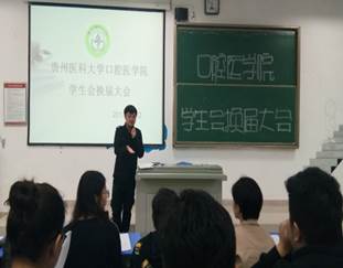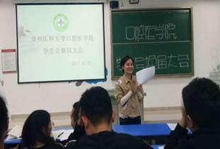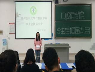 2017年10月12日晚上7时许,口腔医学院分团委学生会全体成员于1201教室举行学生会换届选举,口腔医学院学生科科长钱禾老师、分团委负责人高越月老师出席大会。