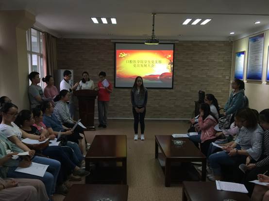 2017年06月26日,口腔医学院学生党支部举行了严肃的党员发展大会。党支部书记胡睿及支部全体学生党员参加了本次大会,会议由胡睿老师主持。本次会议严格按照组织发展程序进行,依程序完成了18名预备党员的发展及13名同学的转正工作。每位同学认真向党组织汇报自己一年来,思想上、学习生、生活上的成长,每位同学的入党介绍人也负责的向党组织介绍了所发展同学的现实表现。汇报后,经过正式党员认真不记名投票和支委的严肃唱票、检票,经统计认为以上同学严格要求自己,符合发展和转正要求,同意吸收18名同学成为中共预备党员,13名同学按期转正。