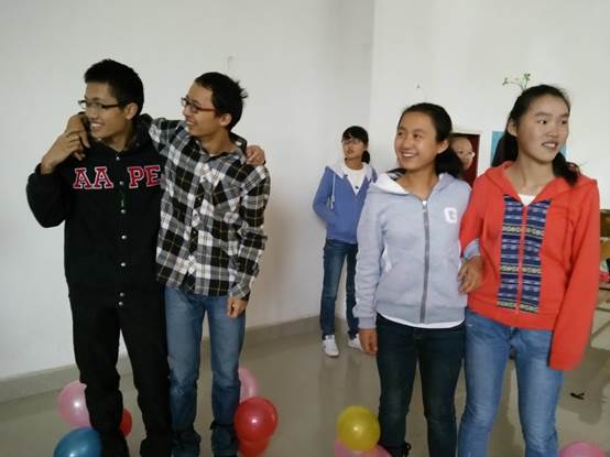 游戏结束后,班委为各组同学计算积分,分别得出一二三名,并给予奖励,最后全体人员合影留恋。