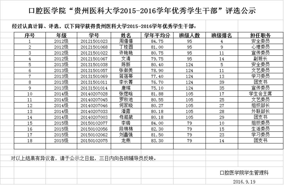 下一条:口腔医学院“贵州医科大学2015-2016学年三好学生”评选公示