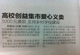 义卖活动的现场,人头攒动,热闹非凡,吆喝声、欢乐声交织成一曲生动的校园爱心之歌。口腔医学院的志愿者们以满腔的热情投入其中,为推销物资使出浑身解数,也让我们看到了口腔医学院的同学们蓬勃的朝气和赤诚的爱心。此次义卖活动在贵州都市报及黔中早报进行了宣传报道。
