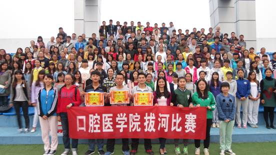 为促进91直播 同学间的友谊,91直播 于2014年10月14日下午举行了迎新杯拔河比赛,此次参赛年级为口腔医学院2012级、2013级、2014级,采用积分制方式评分。