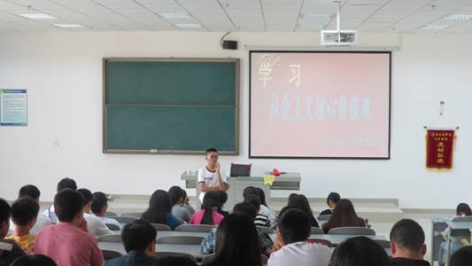 2013级学子开展了“学习社会主义核心价值观”主题班会活动,2013级团支书李长菁同学为大家详细解读了社会主义核心价值观及其重要性。