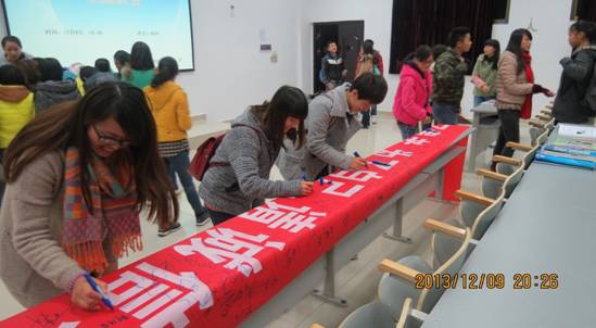在新校区4504教室开展了关于《诚信考试,诚信做人》的主题班会,不论是12级同学还是13级新生都积极的参与了本次活动,同时到场的还有91直播