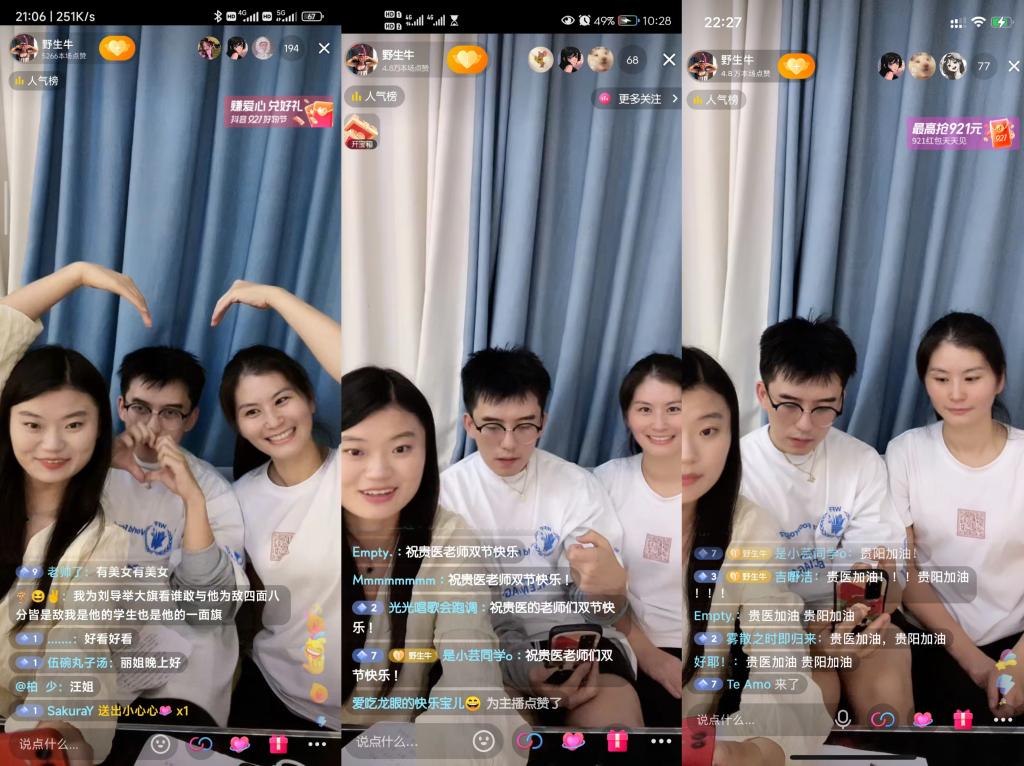 在直播过程中,师生们一起猜灯谜、接飞花令,同学们争先恐后地在直播间打出自己的答案,老师们也为答对的同学送上礼物。除此之外,老师们还与同学们分享了发生在口腔医学院的师生趣事。直播间一片欢声笑语,热闹非凡。直播最后,大家纷纷刷屏“贵医加油,贵阳加油”和对老师们双节快乐的祝福,为疫情之下的城市送去美好的祝福和共克时艰的勇气。