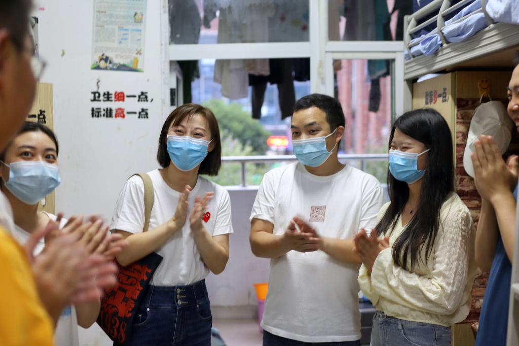 恰逢中秋与教师双节来临党委副书记何雨羲带领新校区抗疫教师团委副书记刘逸洲辅导员汪继蓉医院感染管理科负责人陈锐科员杨亚一起走进新校区学生寝室为中秋留校的同学们送上最美好的祝福也代表口院党政为同学们送上口院心意,彰显口院精神。