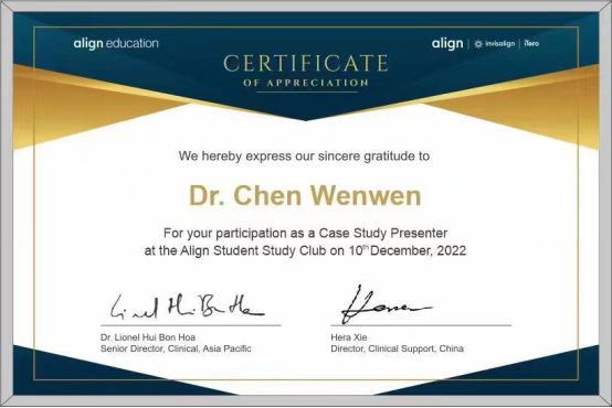 【喜报】正畸专业研究生陈文文在2022年“爱齐亚太地区线上病例大赛”中荣获佳绩