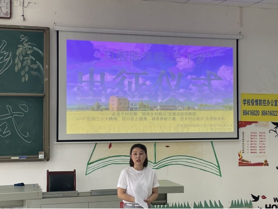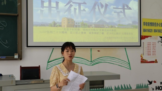 “学习二十大,永远跟党走,奋进新征程”2023年暑期“三下乡”社会实践活动出征仪式在南校区4301教室举行。党委副书记何雨羲、学生管理科负责人张婷、2018级辅导员赵会及部分志愿者代表参加仪式。仪式由2020、2021、2022级辅导员汪继蓉主持。