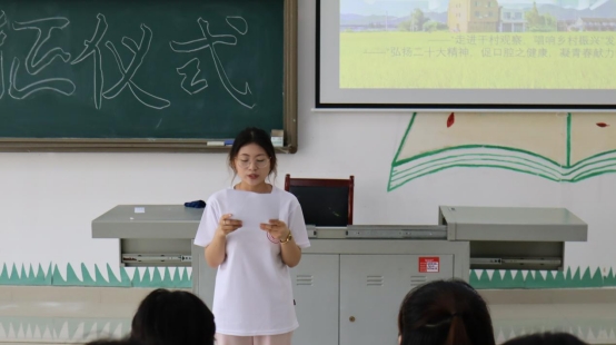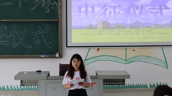 学生志愿者代表王静发言,表达了不负嘱托的决心,表示一定会珍惜此次实践机会,继承和发扬吃苦耐劳精神,全心全意为人民服务。