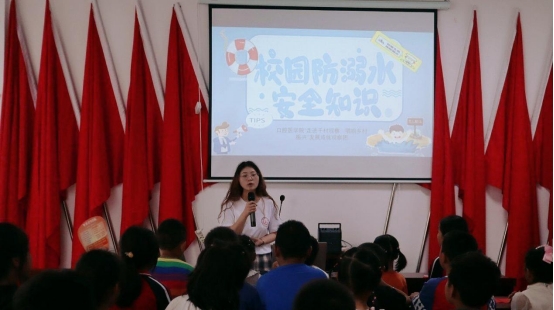 讲座上,观察团带领孩子们在铿锵有力的红歌声中学党史,并为其讲解了口腔健康科普知识,宣讲了不慎落水如何自救、如何施救等急救小妙招,并告诫大家远离野外危险水域。观察团还与孩子们积极互动,充分调动了大家的学习兴趣。