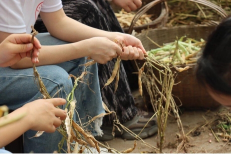 石头路旁的玉米垂着红红的穗,随着微风的吹拂,上下舞动着,似乎在和观察团打着招呼。大家不由得被这样的生机感染触动,内心泛起一阵温暖的涟漪。