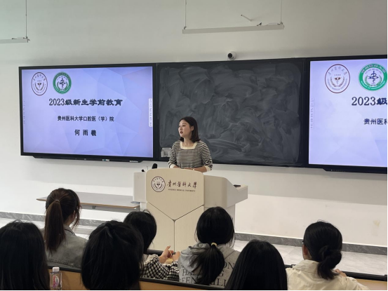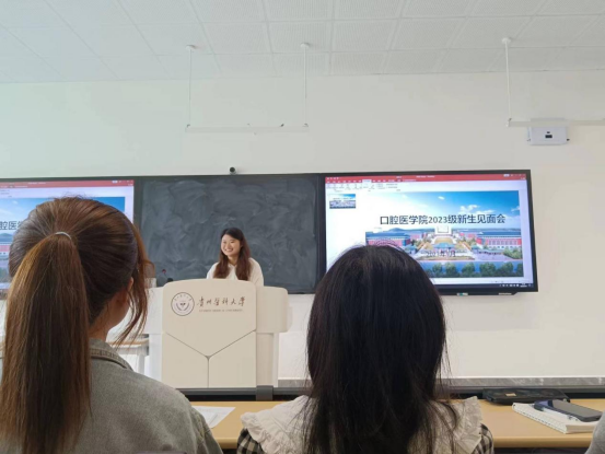9月14日,91直播 在贵州医科大学云漫湖校区基础R101教室召开2023级新生见面会。党委副书记何雨羲出席会议,学生管理科负责人张婷、辅导员汪继蓉及百余名本科新生参与会议。会议由新生辅导员赵会主持。