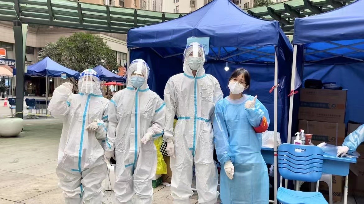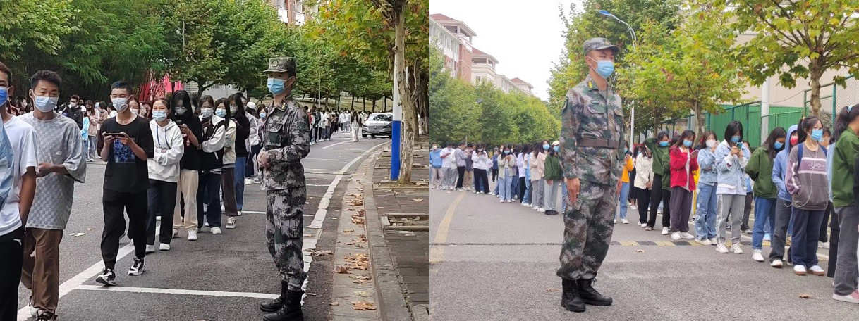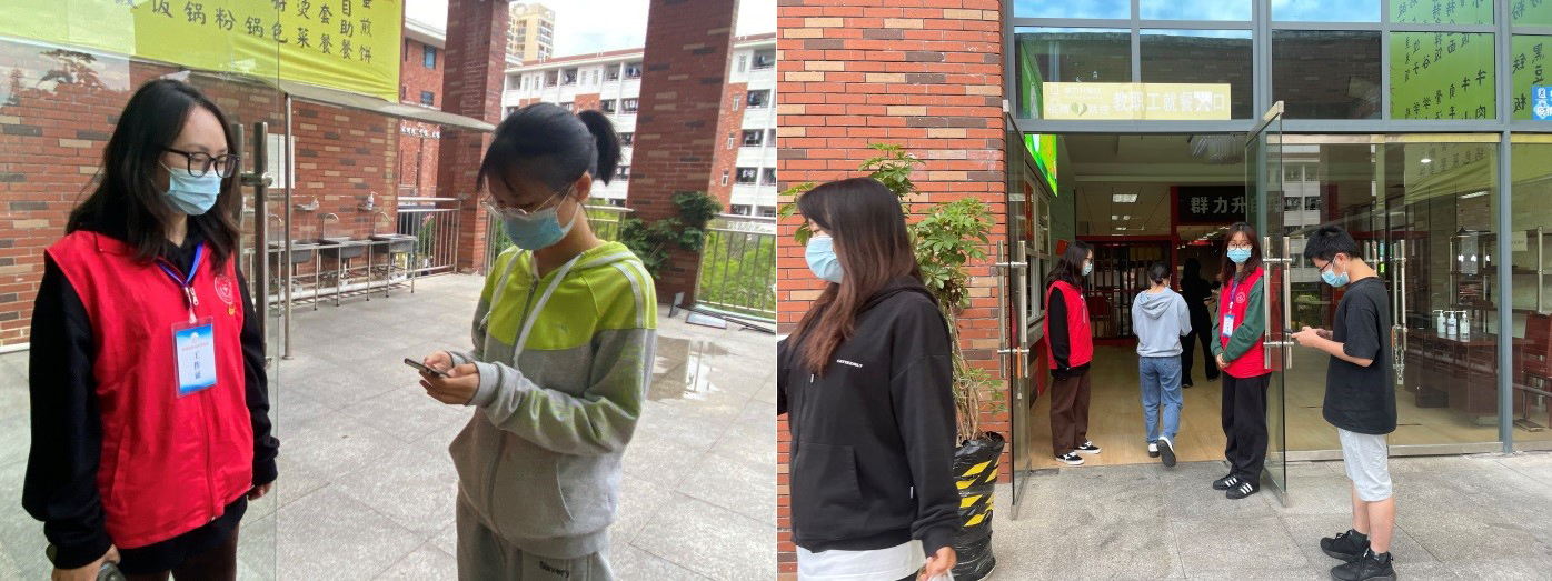 在校外,走读的同学为社区防疫贡献口院青春力量,积极加入志愿者队伍,为所住社区助力核酸检测高效进行。在核酸检测采样现场,引导居民有序排队,提醒居民戴好口罩,保持安全距离,耐心解答问题,并认真录入信息。他们坚守岗位,为打赢这场疫情防控阻击战而努力。