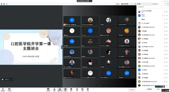 为全面贯彻党的教育方针,加强大学生思想政治教育工作,践行“育心立德,健心树人”育人目标,引导学生投入到新学期的学习中来,8月23日至8月30日,口腔医学院各班级辅导员在新、老校区以线上线下相结合的方式,组织召开“开学第一课”主题班会。