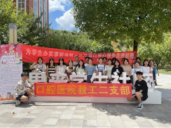 为喜迎2022级新生,将“我为群众办实事”与学生社区服务紧密结合,8月24日,口腔医学院学生科、团委、教工二支部、本科生第一、二、三党支部联合贵州银行贵阳综合保税区支行,在南校区思来学生社区共同开展“为学生办实事解难题,银团用心服务进校园”活动,方便学生了解和办理社保卡。