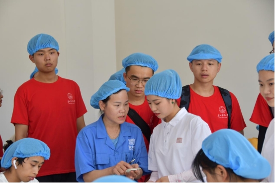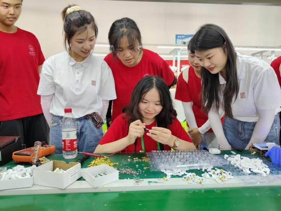 紫云小队还前往了贵州省安顺市紫云县信诚科技有限公司进行参观调研。该公司作为就业扶贫车间,主要从事自主品牌耳机的研发、生产和销售,立足于贵州薄弱的电子产品生产领域,将帮扶车间发展与乡村振兴产业发展相融合、与延伸产业链条相融合、与培育新兴产业相融合。在车间,志愿者们亲手尝试了模组装配,前后孔打胶等工作,切身体验了耳机的生产过程,了解车间的生产流程、现代化的生产模式以及“设计+研发+生产+销售”于一体的制程体系。