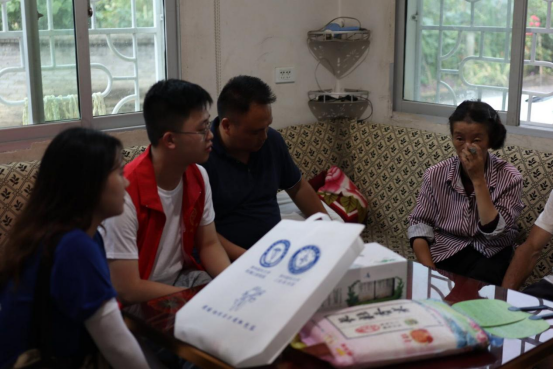 7月18日,湄潭小队全体成员对困难家庭、留守儿童及老人等15户,退伍老红军3户进行了慰问,并进行了面对面访谈,将慰问物资亲手交给了农户。后因橙色暴雨,考虑到山体滑坡、泥石流等安全隐患,湄潭小队将物资托付村委会代为转发。