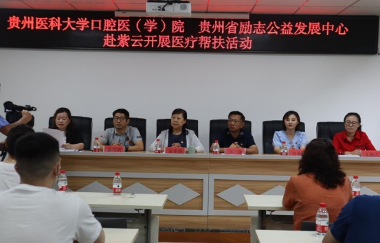 7月19日,紫云小队赴安顺市紫云苗族布依族自治县易地扶贫搬迁安置点云岭街道卫生院开展“青春志愿,爱在口腔”系列活动之“喜迎二十大,永远跟党走”医疗帮扶活动。口腔医学院党委书记张军梅,院长马洪、院党委副书记何雨羲,贵州省励志公益发展中心秘书长周巧明和紫云县人民政府副县长陈燕参加活动。