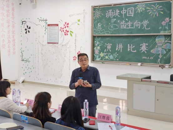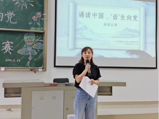 为深入学习贯彻习近平新时代中国特色社会主义思想,充分发挥学校“五老”亲历者、见证者、实践者的优势,614日,口腔医学院关工委联合贵州医科大学离退休工作处党总支第六党支部、本科生党支部、团委在7601教室开展了以“诵读中国 ‘齿’生向党”为主题的演讲比赛。学校离退休工作处党总支第六党支部副书记孔祥林应邀担任此次演讲比赛评委,并做分享。共有11位同学参与比赛,口腔医学院党委副书记何雨羲、学院辅导员、党员代表、团学干部、青年团员和青年学生代表等90余人列席观赛。