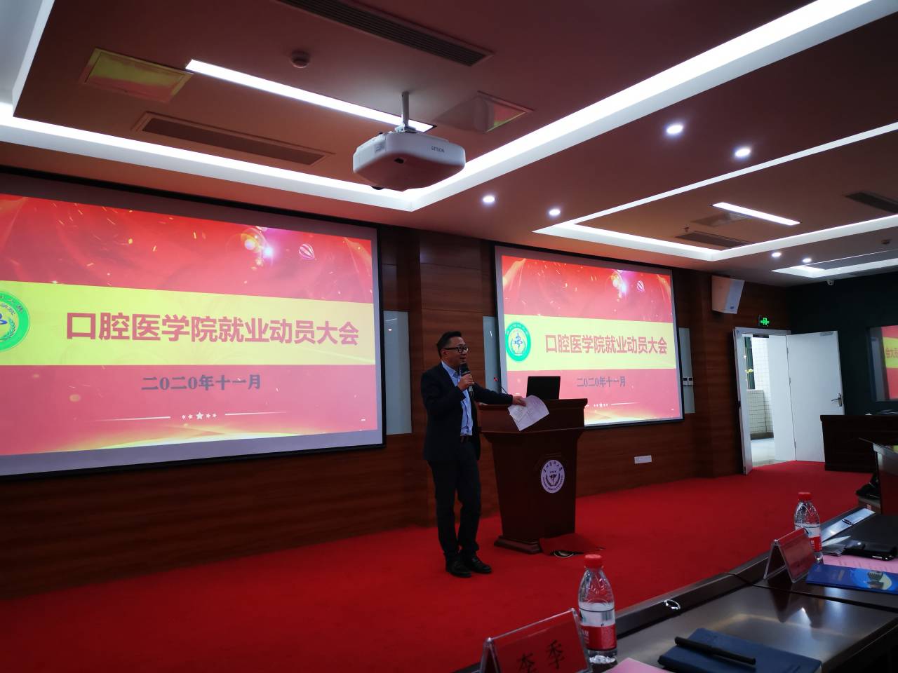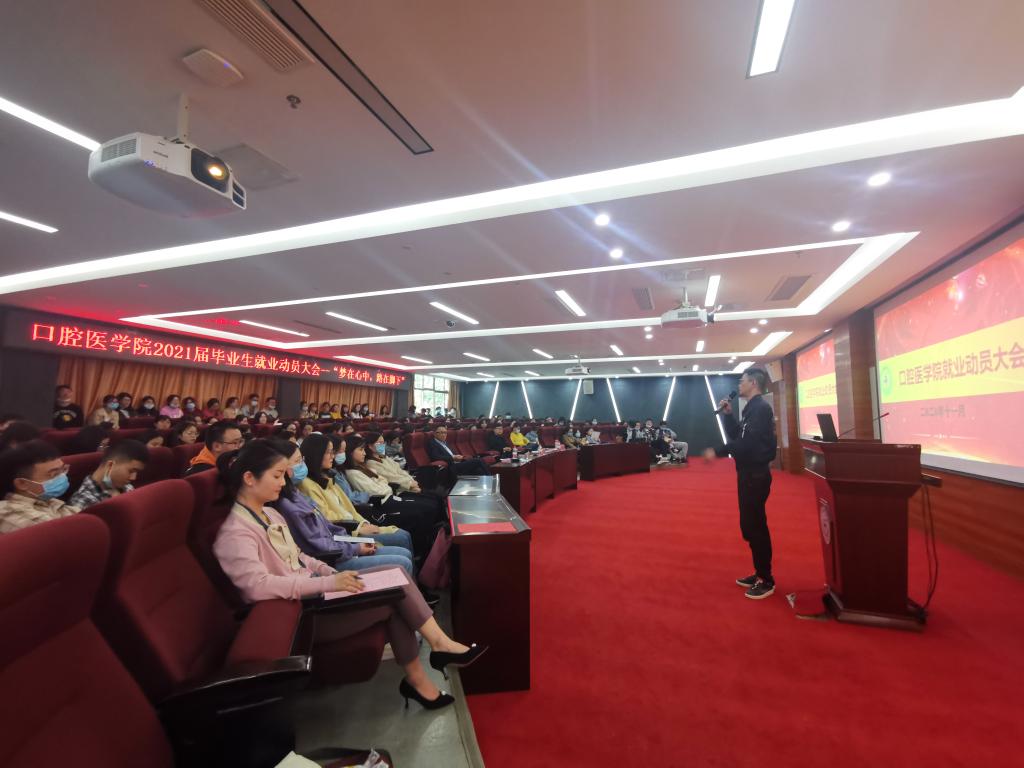 为让毕业生明析当今严峻的就业形势,把握好就业机会,11月19日下午,口腔医学院2021届毕业班就业动员大会以“梦在心中,路在脚下”为题,在北校区临床技能中心207室召开。学校招生就业处副处长李季,口腔医学院党委书记张军梅,党委副书记、院长马洪出席本次会议,会议由学生管理科负责人张婷主持。