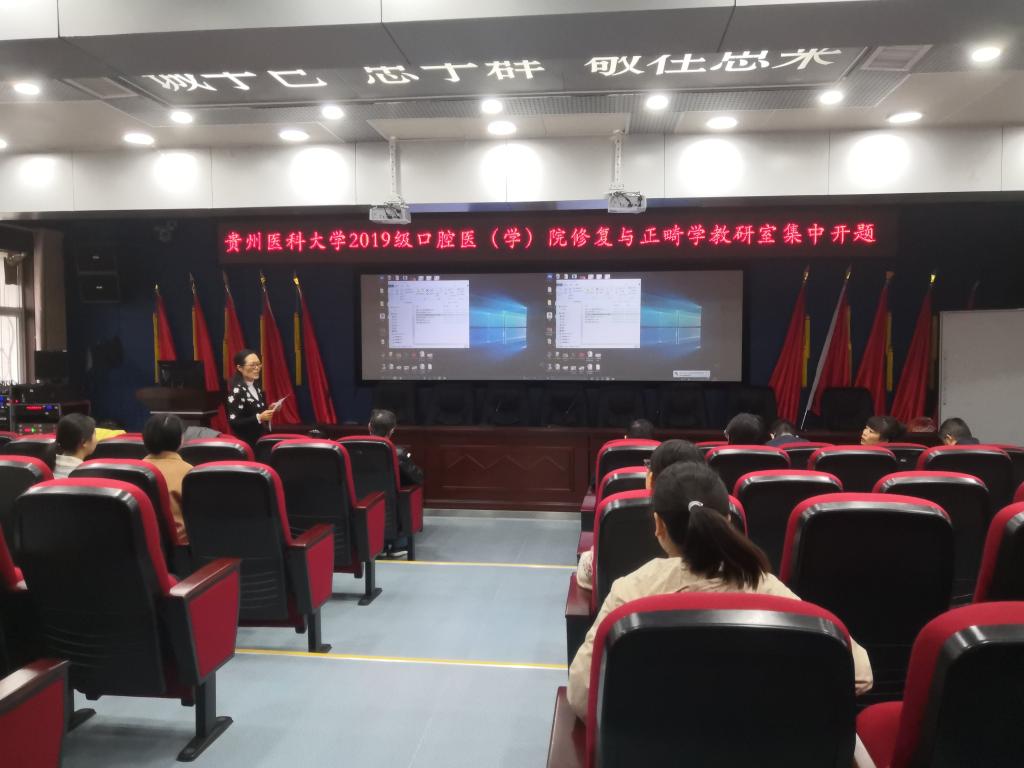 此次集中开题将学生分为两个小组,同时作开题汇报,其中口腔内科学、口腔颌面外科学教研室、组在行政楼5楼会议室进行,口腔修复学、口腔正畸学教研室、组则在行政楼5楼学术报告厅进行,共有26名研究生参加此次集中开题。规则要求答辩学生进行20分钟的开题汇报,汇报内容包括:课题的研究目的和意义、主要研究内容;拟采取的研究方法、技术路线、试验方案、可行性分析及拟解决的关键问题等;研究的特色与创新之处、计划进度、预期结果以及课题研究的支撑条件等。汇报结束后,专家评议组会对答辩学生进行提问,专家组综合考虑现场因素及问答情况评议开题是否通过。