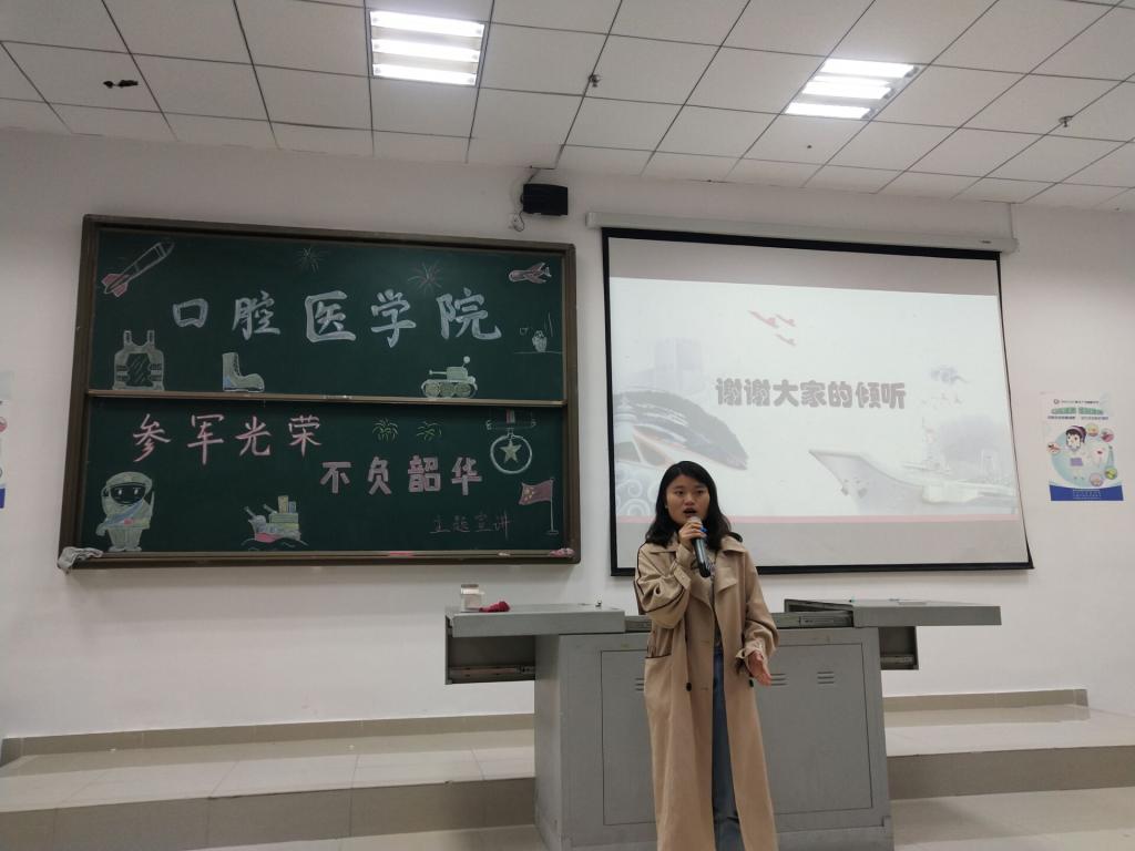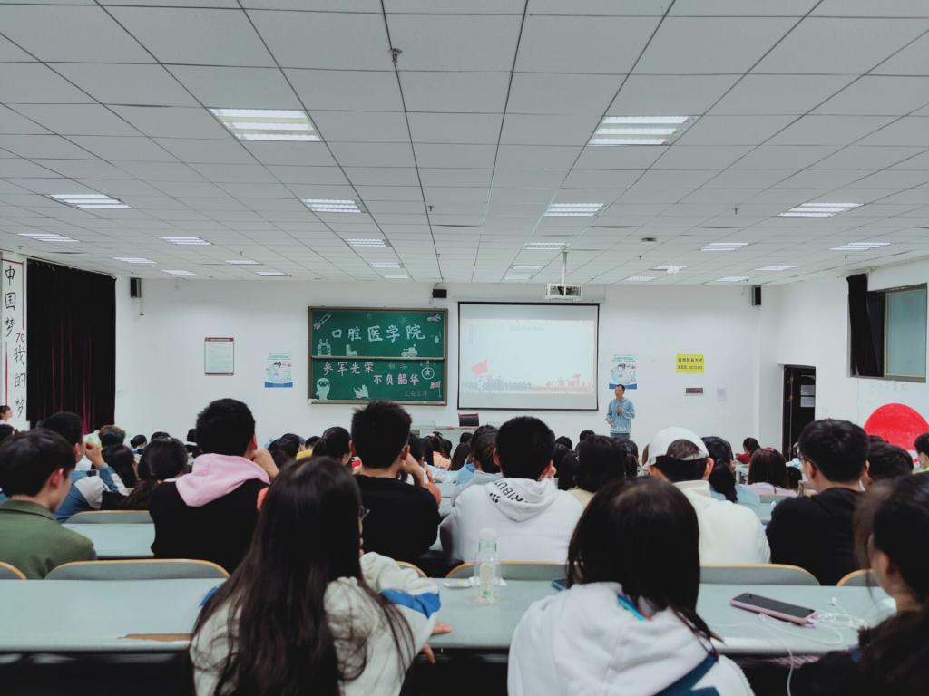 男儿从军志,学子报国情。此次宣讲活动不仅加深了口腔医学院学生对大学生征兵入伍政策的了解,更激发了大家将爱国之情化为报国之心的热情。希望新时代大学生们能够心中永怀家国情,携手共圆中国梦,做奉献国防追梦人!