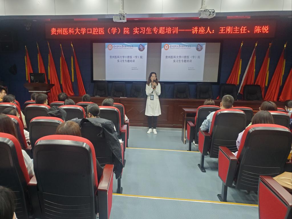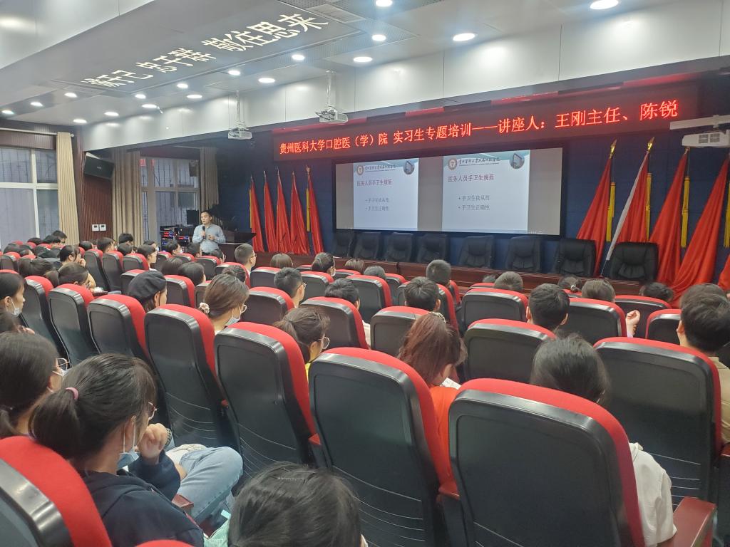 为提高医疗服务质量,保障医疗安全,进一步做好学生实习工作,9月21日,口腔医(学)院在行政楼五楼学术报告厅举行了针对实习生的“《院感知识》《新病历书写技巧与注意事项》”专题培训会。培训会由医务科科长王刚、医院感染管理科负责人陈锐主讲,口腔医学院2016级实习生、神奇学院2016级实习生及医学卫生管理学院2017级实习生参加培训。生产实习科科长胡睿作会议主持。